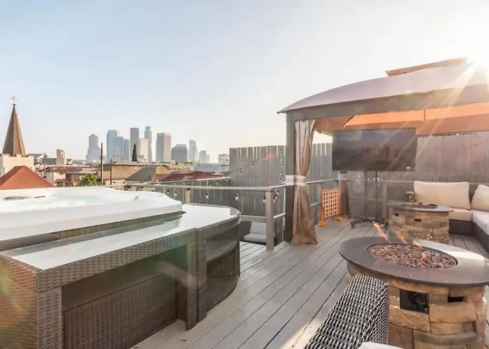 Hollywood Burbank airport can be reached within 24 minutes drive, and natural attractions like Grand Park are a mere 1.1 km away. The nearby religious sights include Cathedral of Our Lady of the Angels, situated merely 0.9 km away. Gorgeous Dtla W/ View + Hot Tub! Villa offers sports enthusiasts to discover the multi-purpose arena "STAPLES Center", located 3.1 km away.